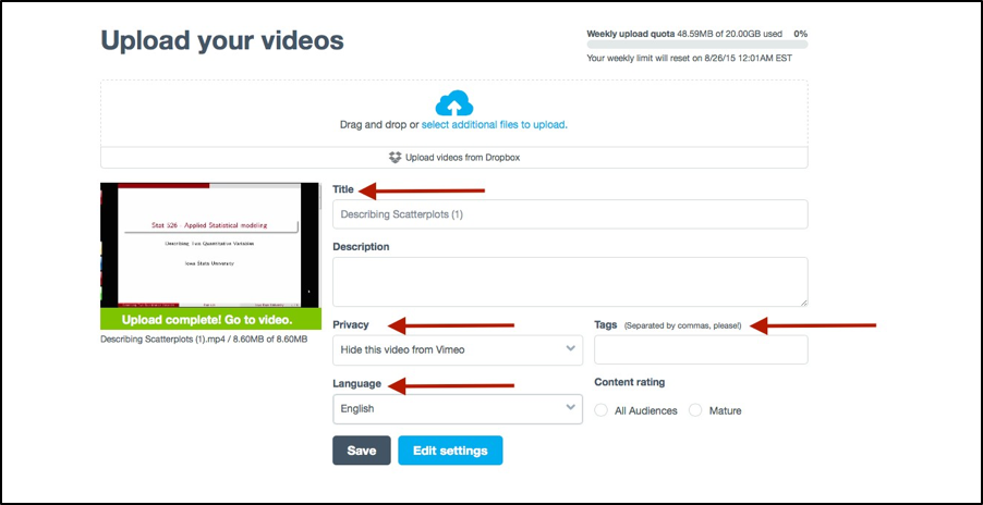 We advise you to do this collectively, or allow each presenter to do it themselves. Be aware that this is not a meaningless activity as the title for example can influence the success of the video!