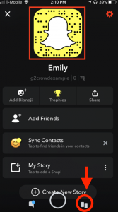 Participants will now create their story. The user interface (UI) and appearance of Snapchat changes regularly. Let them look around and learn how the current UI works if necessary. Generally, here’s what should be done: