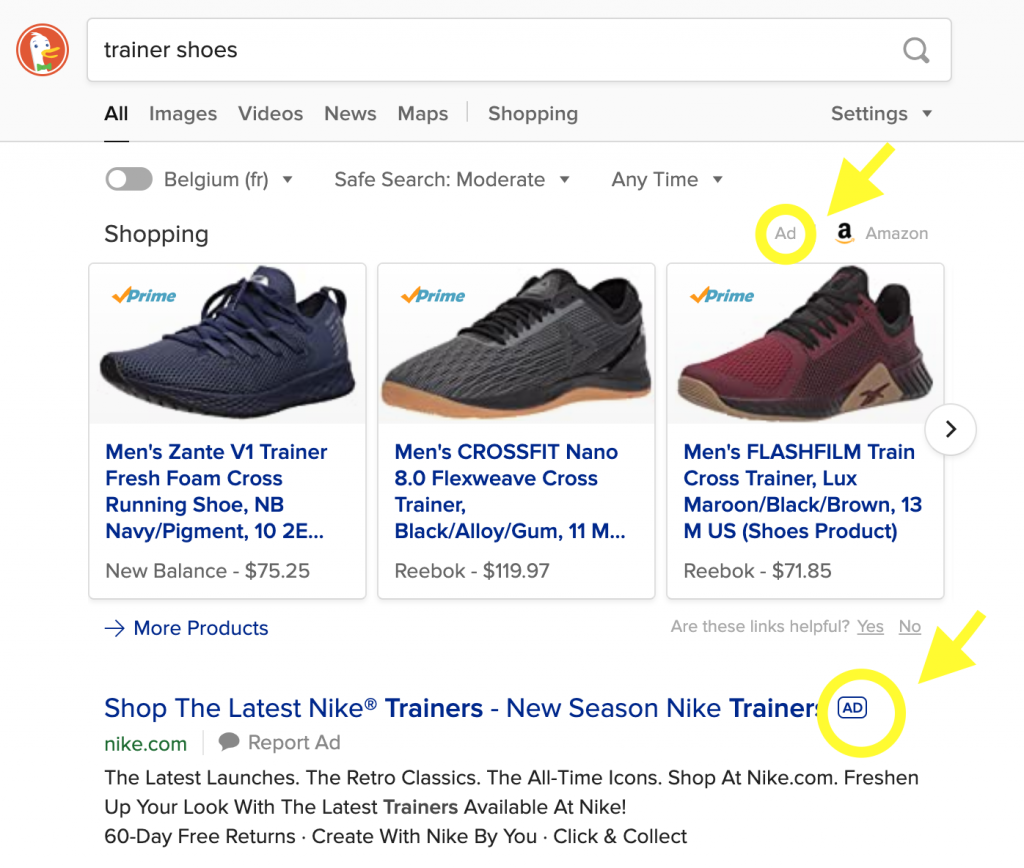 It can be sometimes difficult to spot ads on search engines. They often have the same form as other links and may also differentiate themselves from other results with a tag reading ‘ad’ or ‘sponsored ad’.