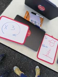At a signal given by the facilitator, participants will execute the algorithm. As the execution time is very short, it is recommended to redo the exercise two or three times to allow time for everyone to understand how it works. You can draw attention here to the idea of a loop – i.e. a sequence repeated – and this also shows that as long as we don’t tell an algorithm to stop, it will continue to execute its instructions indefinitely.