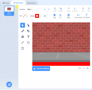 Next draw a red bar across the bottom of the screen by going to the ‘Backdrop’ tab near the top left of the screen.