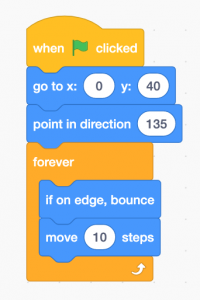 We need to make the ball do several things. Start by making it move and bounce off the edges by adding the following blocks to its script: