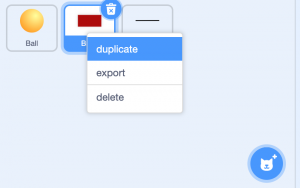 To add more bricks, right-click on the ‘Brick’ sprite and duplicate it as many times as you wish. Then place them on the backdrop above where the ball appears.