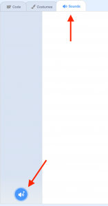 To include sounds, the first step is to import them. For this, go to the sounds tablet and click on the speaker icon in the bottom left.
