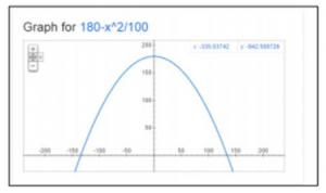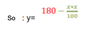 The figure denotes that whatever happens, 180 will be added to height if x = 0 (i.e. we’re at the centre) then y = 180. The second part controls the appearance of the trajectory. If we trace along a graph the coordinates of x and y, we will get what we want: a bell curve trajectory.