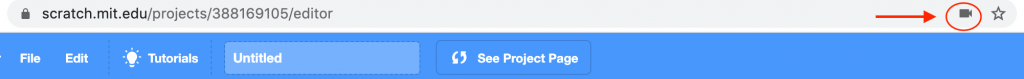 Note: if it’s not working, you may need to give permission to Scratch to access your computer’s camera. If using Chrome for example you can do that by clicking on the camera icon shown below.