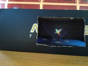 Use the transparent pyramid to introduce the hologram concept to the group. There are many YouTube videos you can use to support your explanation, such as this one. You need to place the transparent pyramid on a tablet, turn down the lights and wait for the remarks and questions come in: