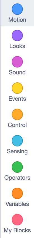 - Certain blocks are rounded on top meaning we cannot place anything before them. These start each script and usually correspond to events which take place outside the program, for example when the player clicks on the green flag. (We will see later that the program can also generate events using messages).