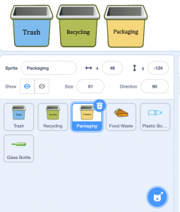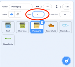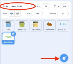 Click on the field circled in the image above to rename the sprites, making sure to give them clear names such as ‘Glass Bottle’, ‘Trash’, etc.