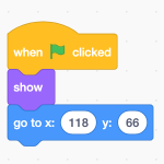 When the green flag is clicked, the trash will appear at the indicated coordinate.
