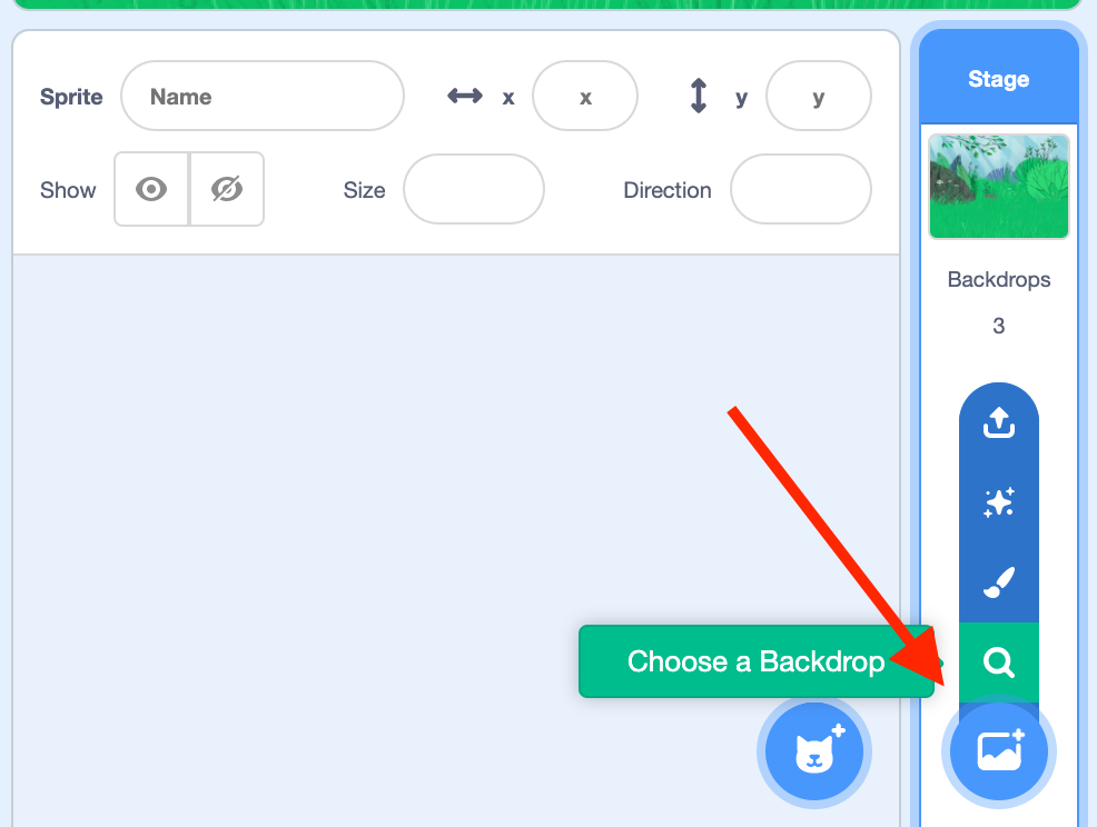 1. When the green flag is clicked, the ‘Forest’ backdrop will appear.