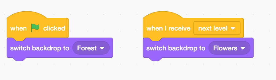 2. When the message ‘next backdrop’ is received, the ‘Flowers’ backdrop will appear.