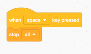 As we are now using ‘stop all’ to stop the rotation of the costumes, the game cannot continue after one round (Scratch stops). How can we do this differently so the game doesn’t stop? Find a way to do it* and you will then be able to add the following mechanics: