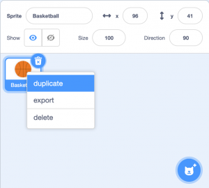 As said above, we will need to copy the sprites in order to have three instead of just one. Right click on the sprite and choose ‘duplicate’. Now do it a second time.