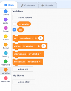 - Create a variable ‘size’ corresponding to the size of the body and the head – in our example. 25 pixels.