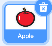 - Create a new sprite, choosing ‘Apple’ from the library. Name it ‘apple’.