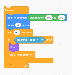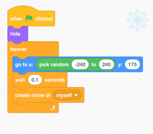 - Replace ‘when the green flag is clicked’ with ‘when I start with a clone’.