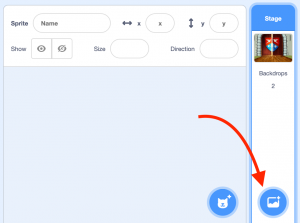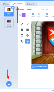 Click on the ‘Backdrops’ tab near the left of the screen, then go the backdrop tab on the bottom left another from the library. For this example we chose ‘Castle 3’.