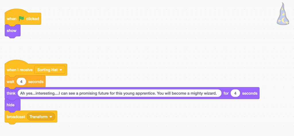 This is a tutorial on how to make a simple animation on Scratch starring a magical sorting hat.