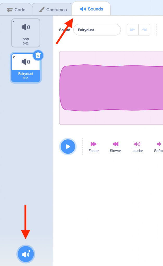 To choose the sound effect, click on the ‘Sounds’ tab and then on the speaker icon on the bottom left to choose from the library.