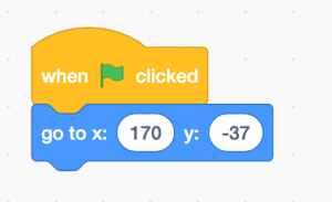 When the green flag is clicked, the sprite will place itself on the backdrop at x= 170 and y= -37
