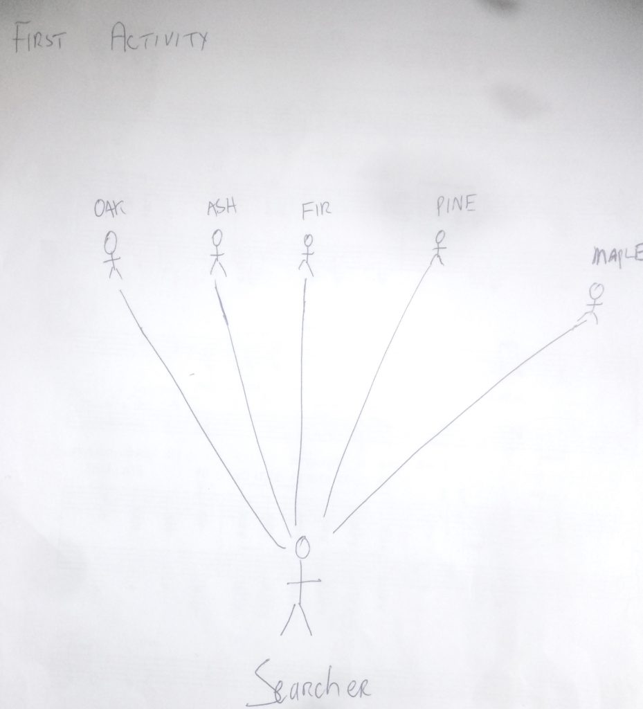 Explain the principle: without a search engine, we have to go ourselves to search one by one the name of every tree. We will need to sort through information piece by piece.
