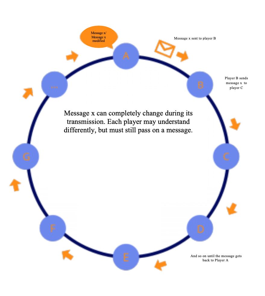 - The next person will now repeat this to the person to their left. They must try to repeat exactly what they heard.