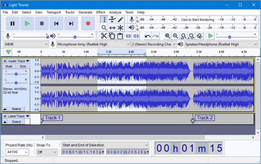 Overview of Audacity's project window