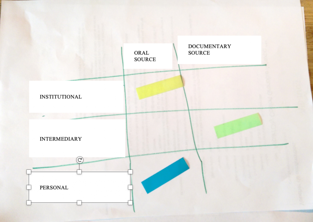 Following the previous activity, ask participants to name different kinds of sources and write them on post-its. Once you have 12 types, put them into categories on the board. To do this, first explain the different categories. They can be: