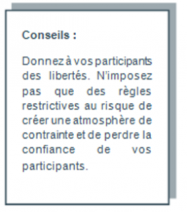 - Si vous êtes plusieurs animateurs, n’hésitez pas à vous répartir les rôles et à échanger.