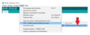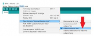 d : Choisir la carte ( Arduino/ Genuino Uno)