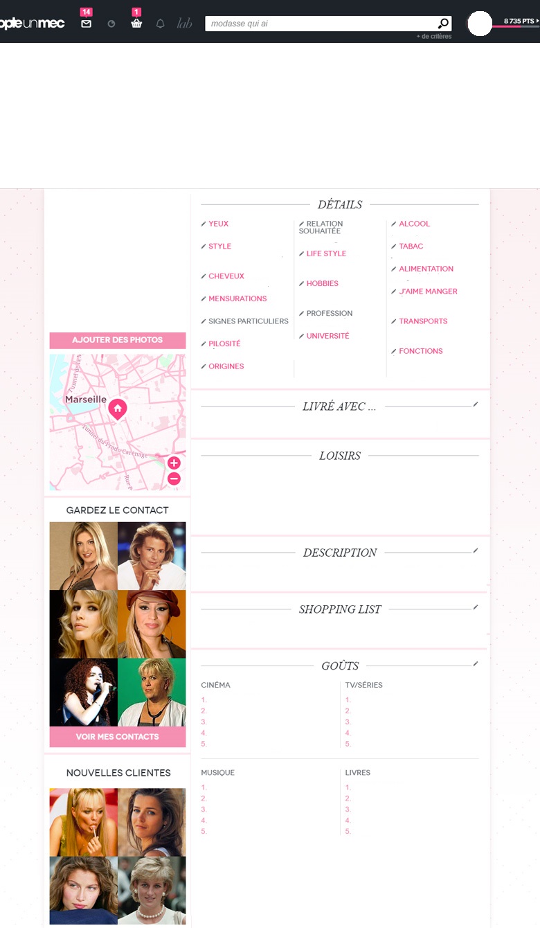 Maquette de profils Facebook, Instagram ou de site de rencontres en annexes