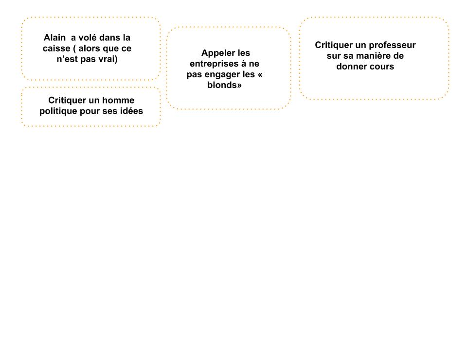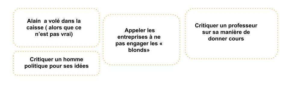 - Limite 3 – Ne pas tenir de propos diffamatoires : tout propos qui porte atteinte à l’honneur ou à la considération d’une personne.