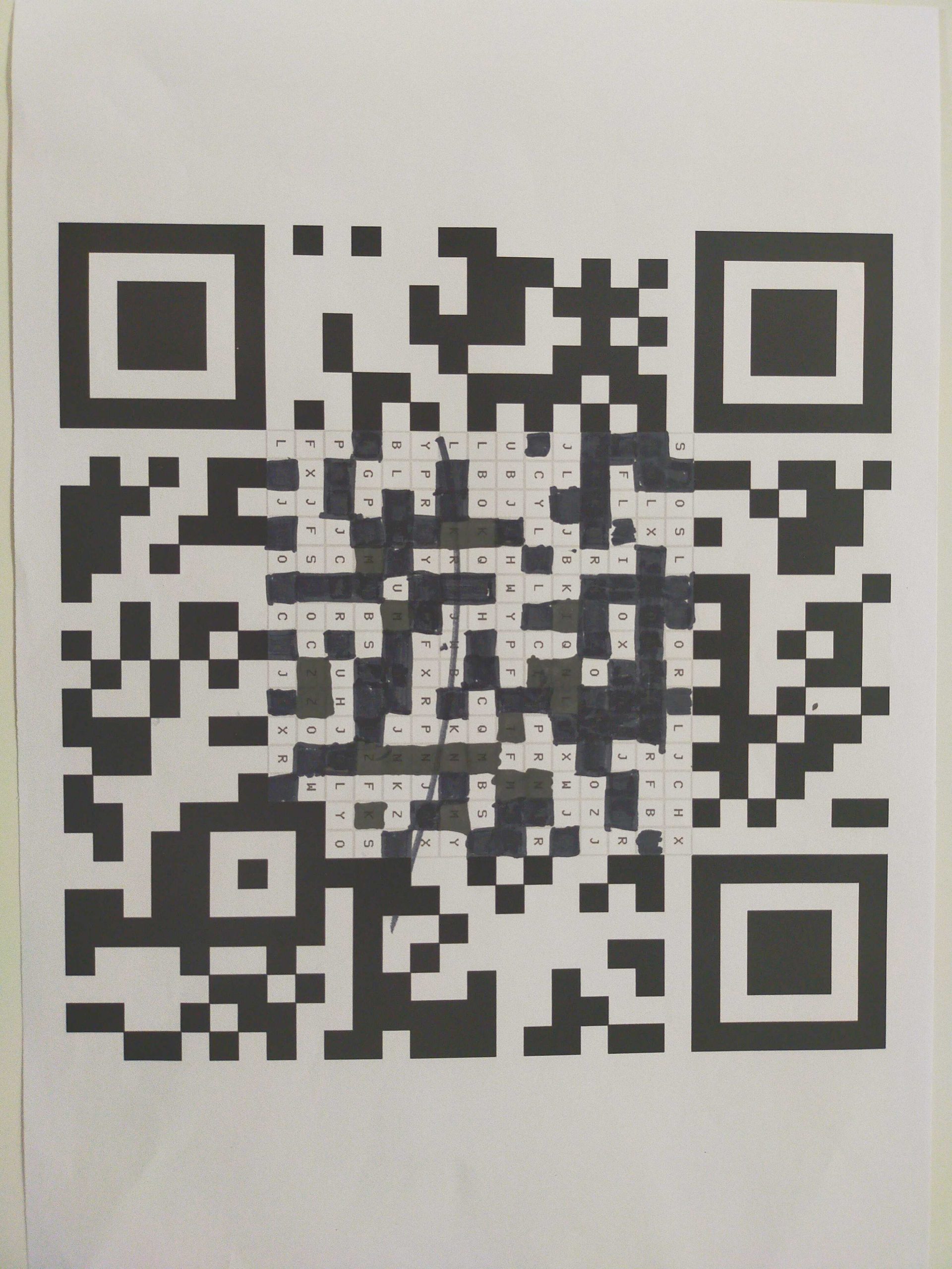 Exemple : les lettres coloriées en noir doivent aussi être colorié dans le QR code