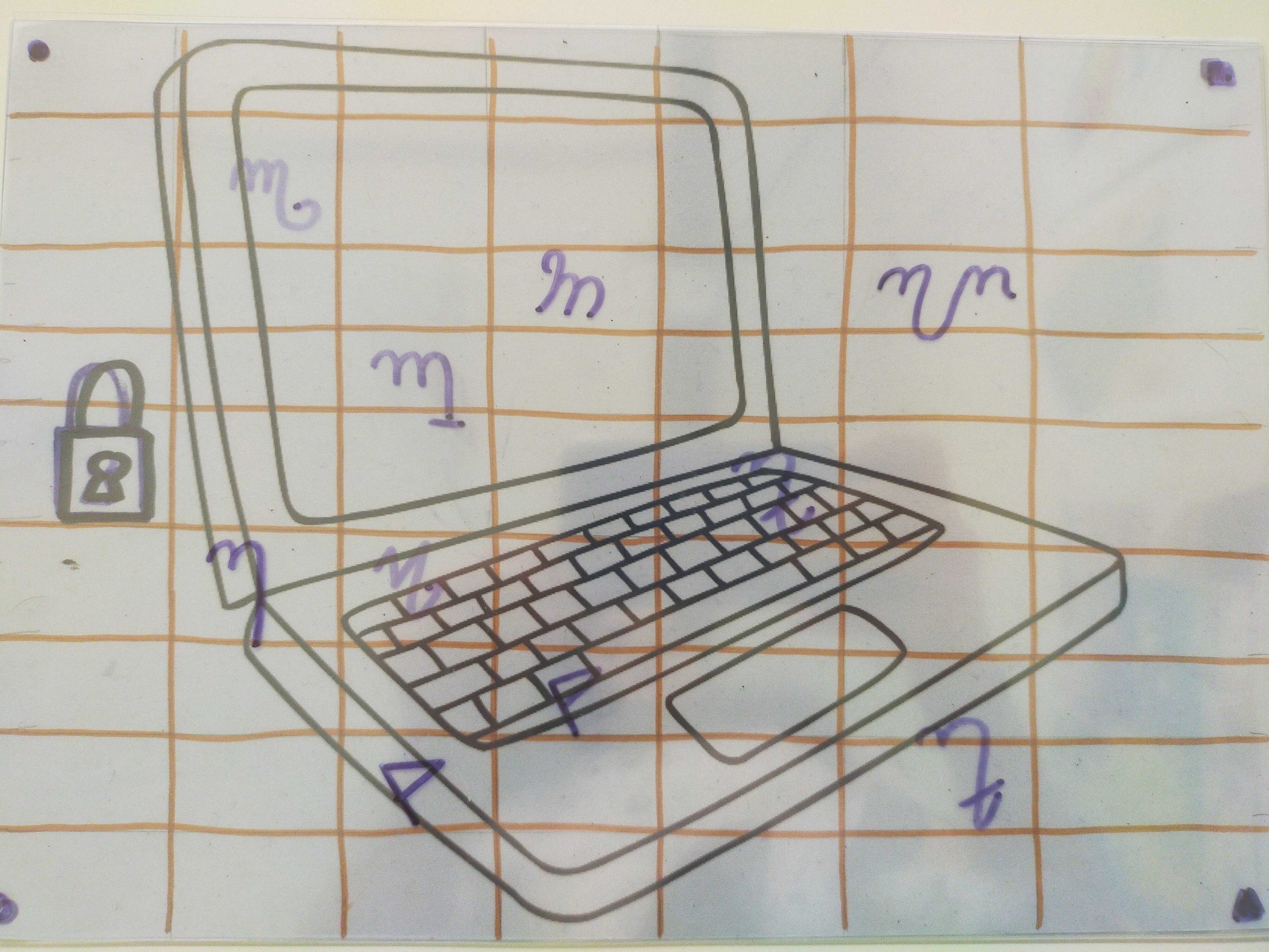 - Pochette 2 : Dessin d’un ordinateur sur lequel il faudra disposer les feuilles transparentes avec le code dans l’ordre (à imprimer)