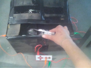Pour que la cuillère glisse dans le carton tout en ayant les pinces touchant l’aluminium, il suffit de faire des trous à la bonne hauteur ! Attention à ne pas avoir mis de scotch aux extrémité du carton, et préférer faire passer l’aluminium en dessous pour mettre du scotch dans un endroit qui ne fera pas obstacle à la conductivité.