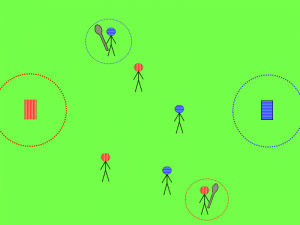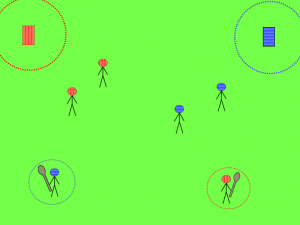 Voici une autre disposition de terrain possible et fonctionnel. En tant qu’animateur, vous devez faire preuve d’une bonne capacité d’adaptation pour ce jeu-là, en fonction de l’espace que vous disposez, du matériel à disposition, et du nombre de joueurs.