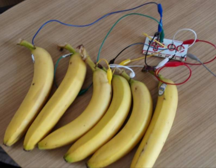 Le but de cette activité est de fabriquer un piano à partir de bananes. A chaque fois que la personne touchera l’une des bananes, l’ordinateur jouera la note correspondante. Pour ce faire, nous allons utiliser le Makey-Makey qui permet de transformer n’importe quel objet conducteur en touche de clavier !