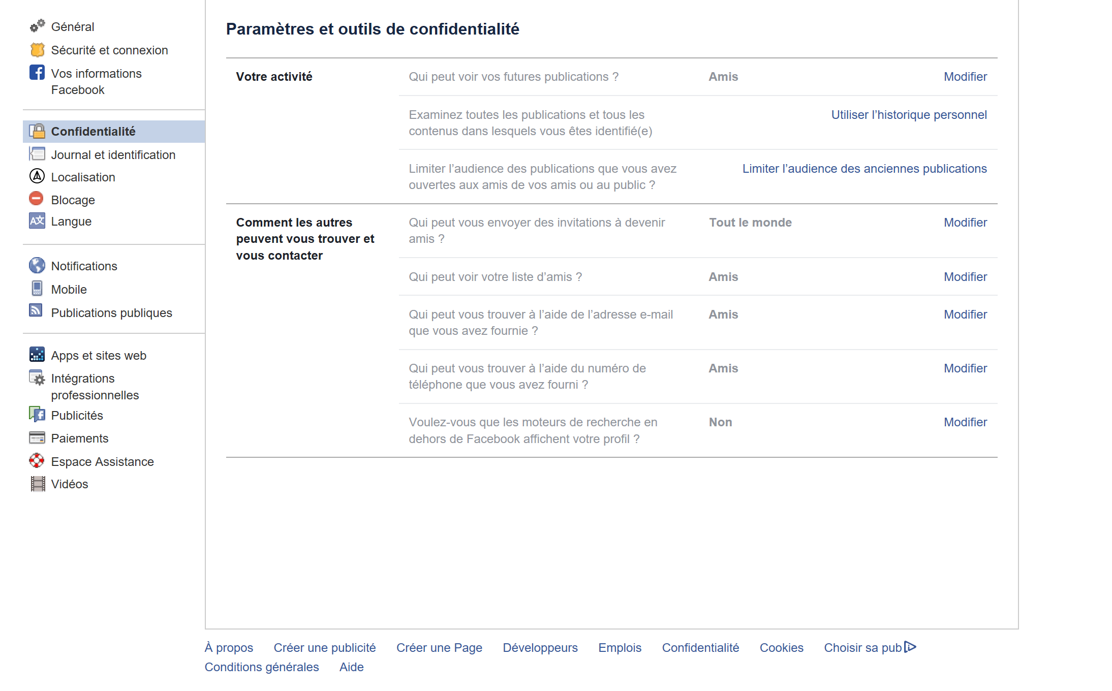 - Configurer correctement ses comptes sur les réseaux sociaux (voir en annexe les exemples Facebook)