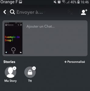 Une fois que leur image (qui est donc devenue un Snap) est terminée, cliquer sur envoyer (l’icône en bas à gauche), puis cliquer sur le nom de la story qui va apparaître. La première image de leur story est créée ! Ielles n’ont plus qu’à faire la même chose pour toutes leurs images.