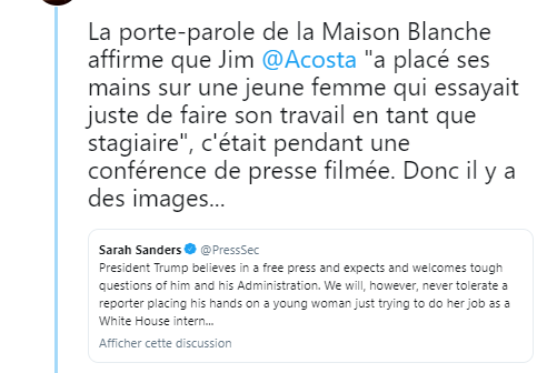 Pour la dernière partie de cette activité, demander aux participant.e.s de consulter le fil d’information, et de retweeter trois tweets. L’objectif ici est de comprendre qu’un retweet efficace, ce n’est pas simplement cliquer sur « retweeter ». Le mieux, est d’écrire son propre message, qui s’affichera au-dessus du tweet retweeté. Le but est d’apporter une précision à l’information ou un angle humoristique voire sarcastique
