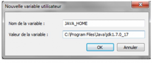 Ensuite, il faut paramétrer la variable JAVA_HOMEArchives disponibles ici :http://www.oracle.com/technetwork/java/javase/downloads/jdk7-downloads-1880260.html