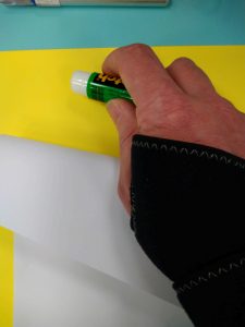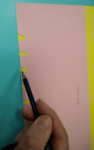 Une fois la première illustration réalisée, placer une attache parisienne sur le dessin. Pour simplifier la tâche s’aider d’un cutter pour effectuer un petit trou et y glisser l’attache parisienne qui sera plié à son envers.