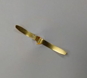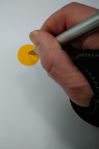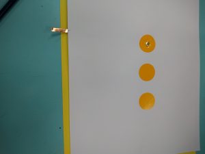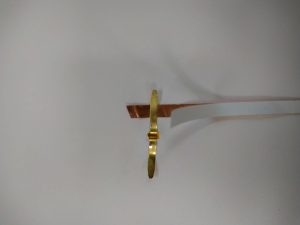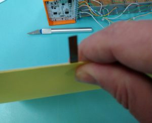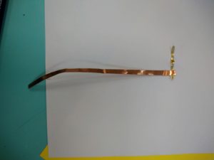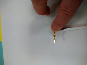 placer derrière le dessin, le ruban de cuivre attaché à une extrémité à l’attache parisienne, et l’autre extrémité est collée à l’emplacement de la jonction entre la tranche du papier et du boulon/écrou repéré par le gabarit précédemment.