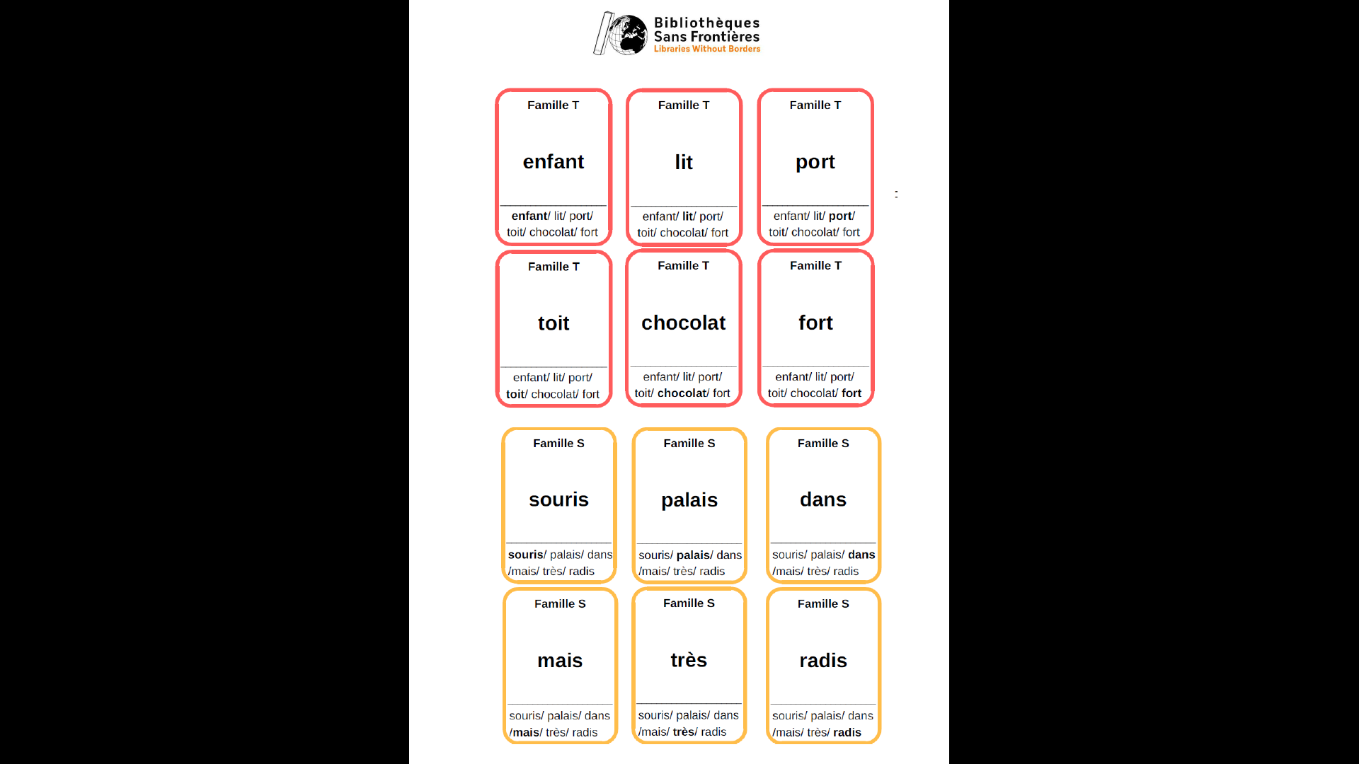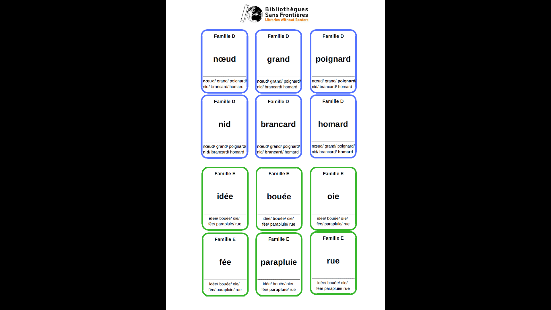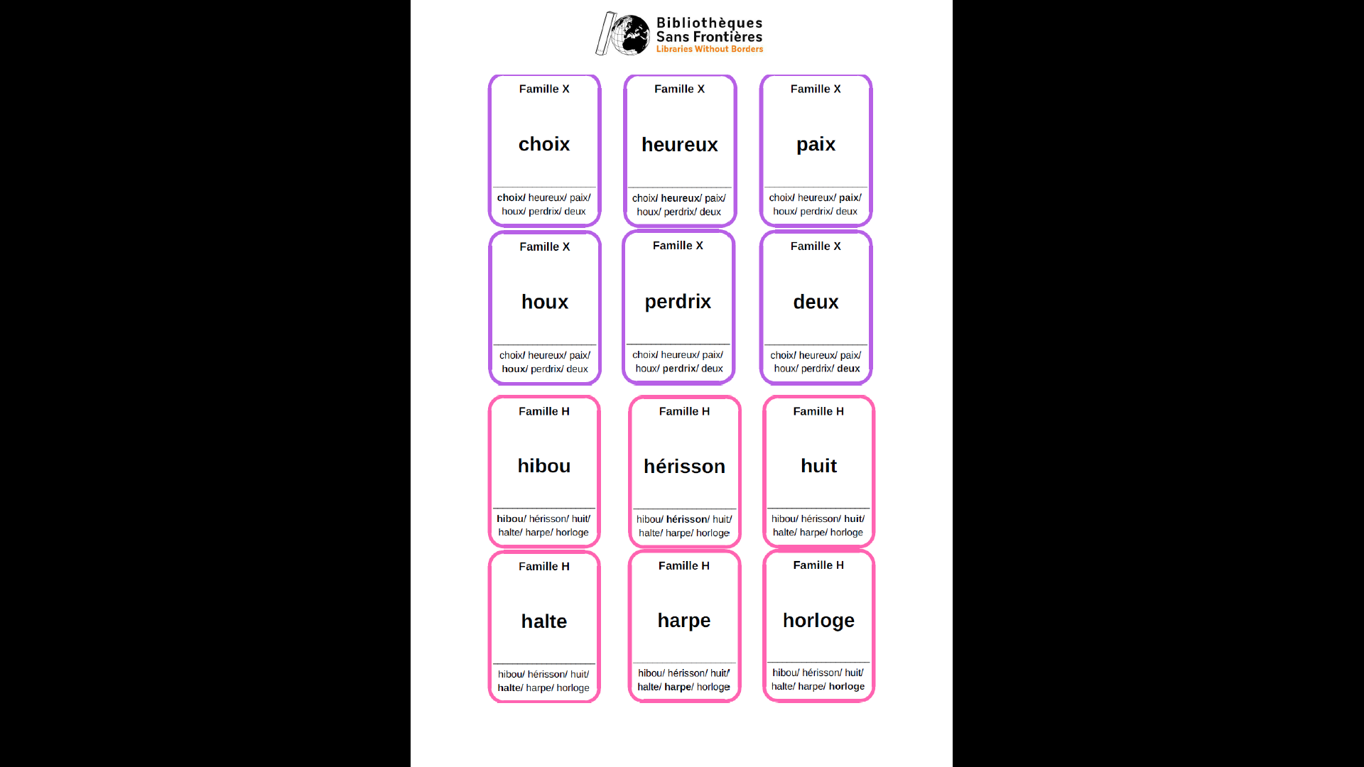 La particularité de cette version « lettres muettes » est que les familles sont thématiques :