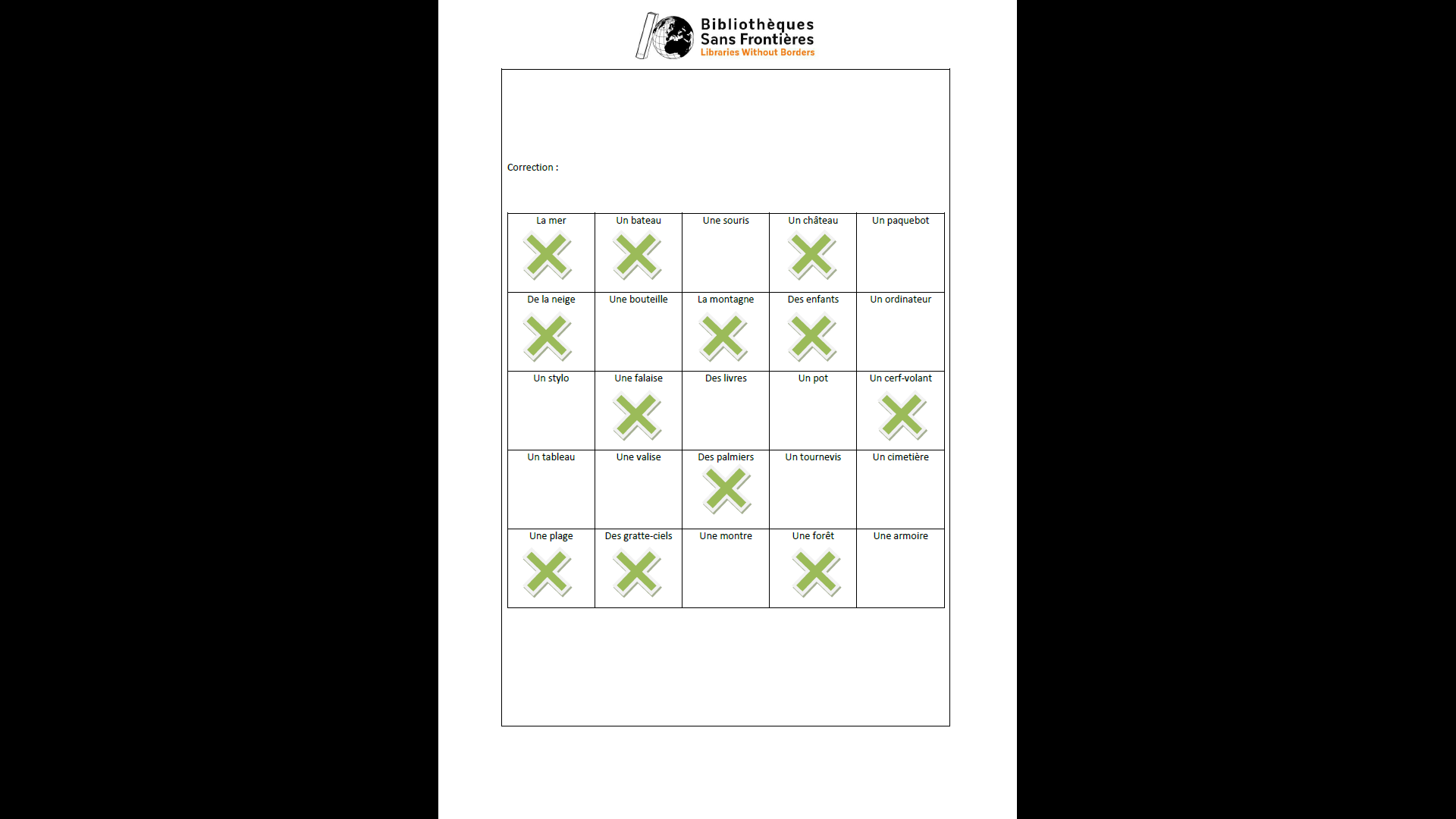 Après trois visionnages (ou plus, selon le niveau des participants), on corrige collectivement : chacun participe. Cela peut être aussi un temps où on incite les participants à donner la définition des mots, à verbaliser à l’oral.