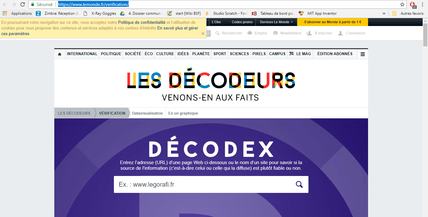 - Le Decodex du Monde (pour les articles en copiant l’url ici),