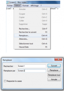 Vous êtes à présent devant des lignes de code, peut-être pour certain incompréhensible, mais pas de panique. Allez dans Edition puis cliquez sur remplacer. Une fenêtre s’ouvre.
