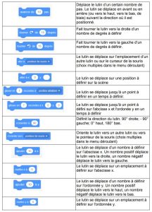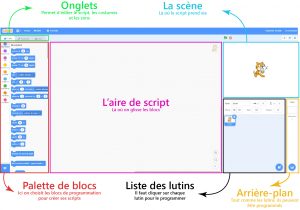 Les lutins (appelés également « Sprite ») sont les éléments que vous allez pouvoir programmer individuellement en glissant les blocs de programmation dans l’aire de script.