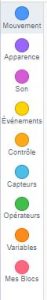 Chaque bloc est classé dans différentes catégories très repérables par les couleurs.